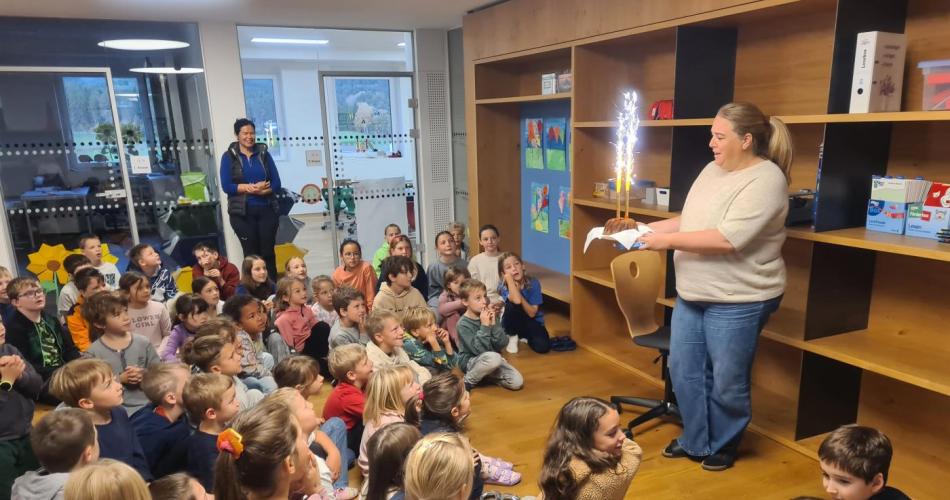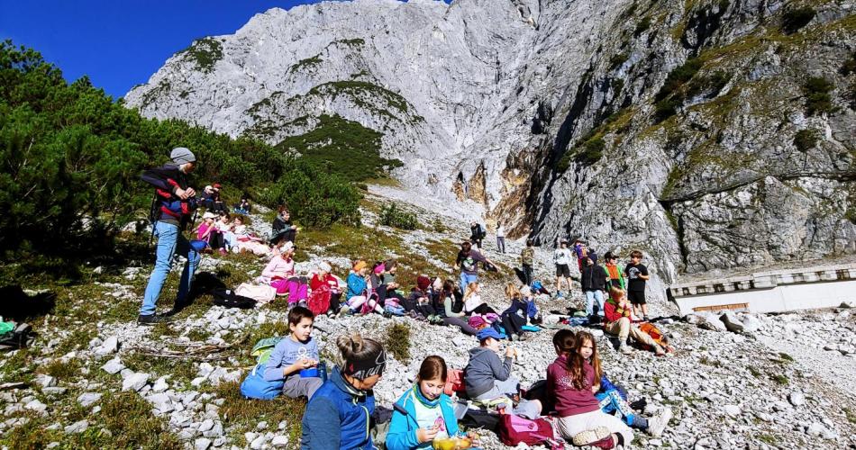 Trotz der Kälte am Morgen zeigte sich der Tag von seiner schönsten Seite: klare Luft, die ersten bunten Blätter und Sonnenschein begleiteten die Kinder und Lehrpersonen auf ihrem Weg.