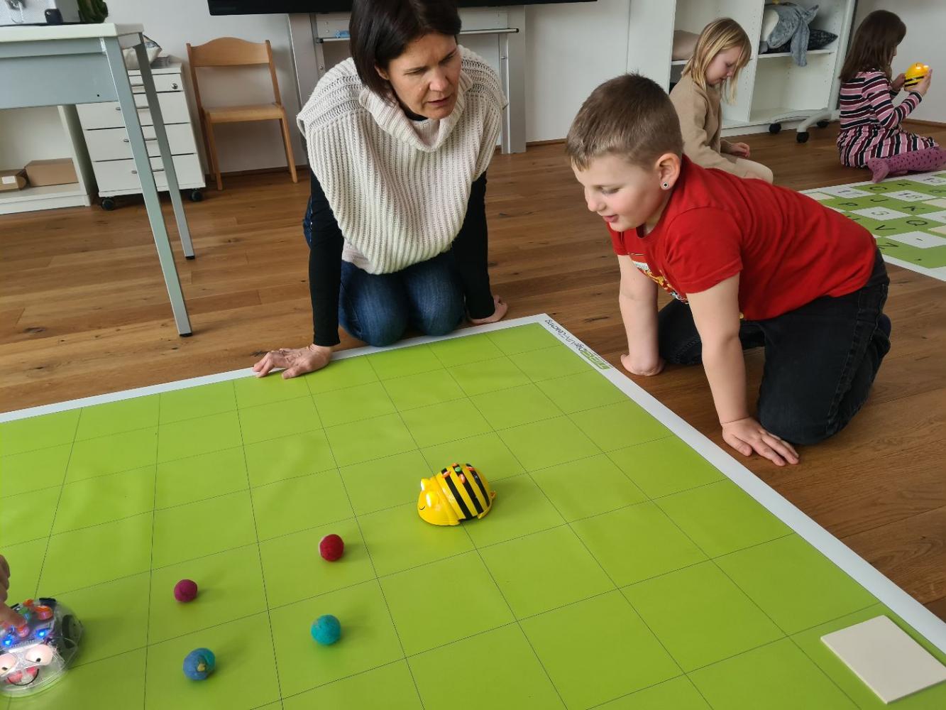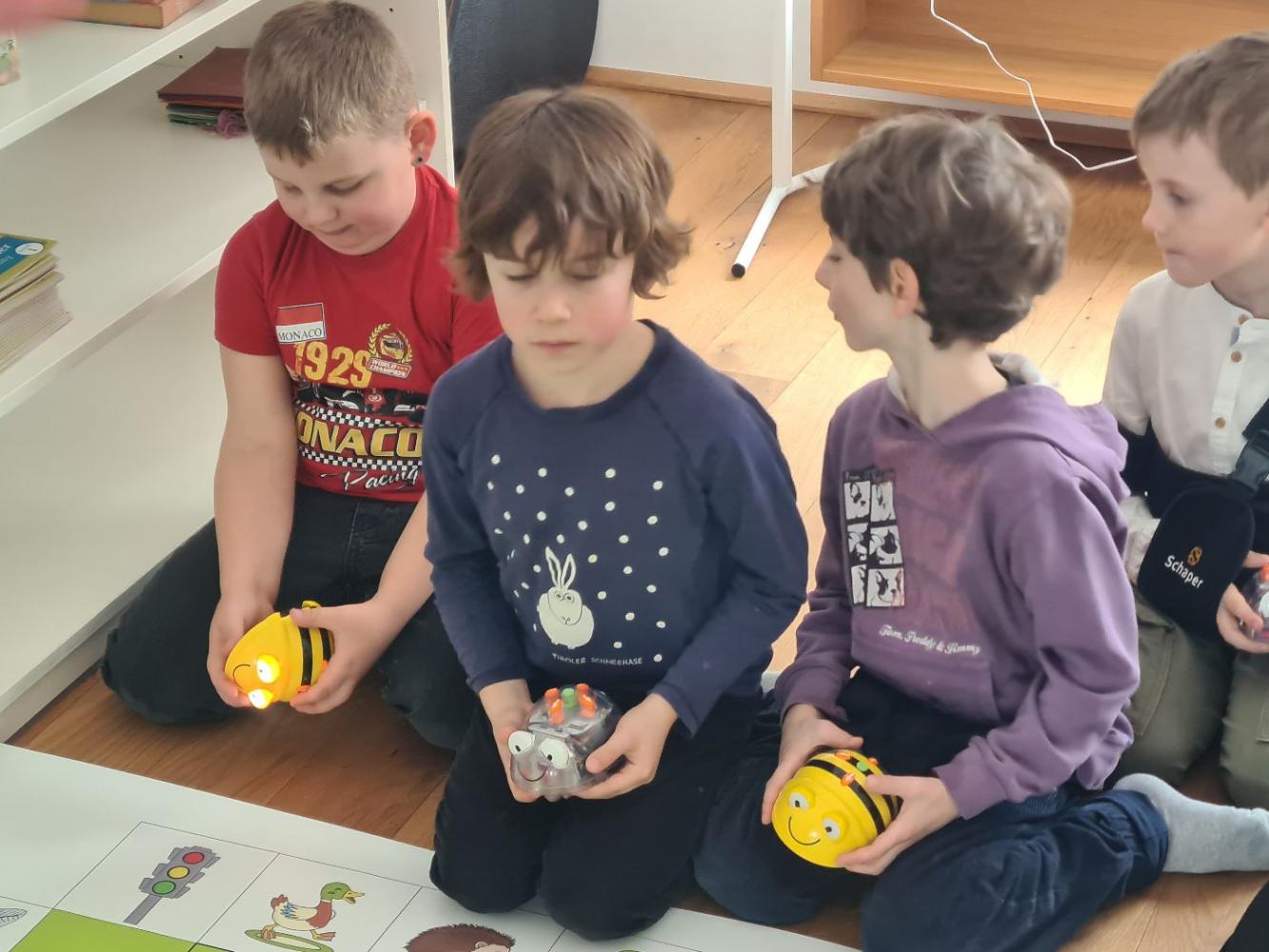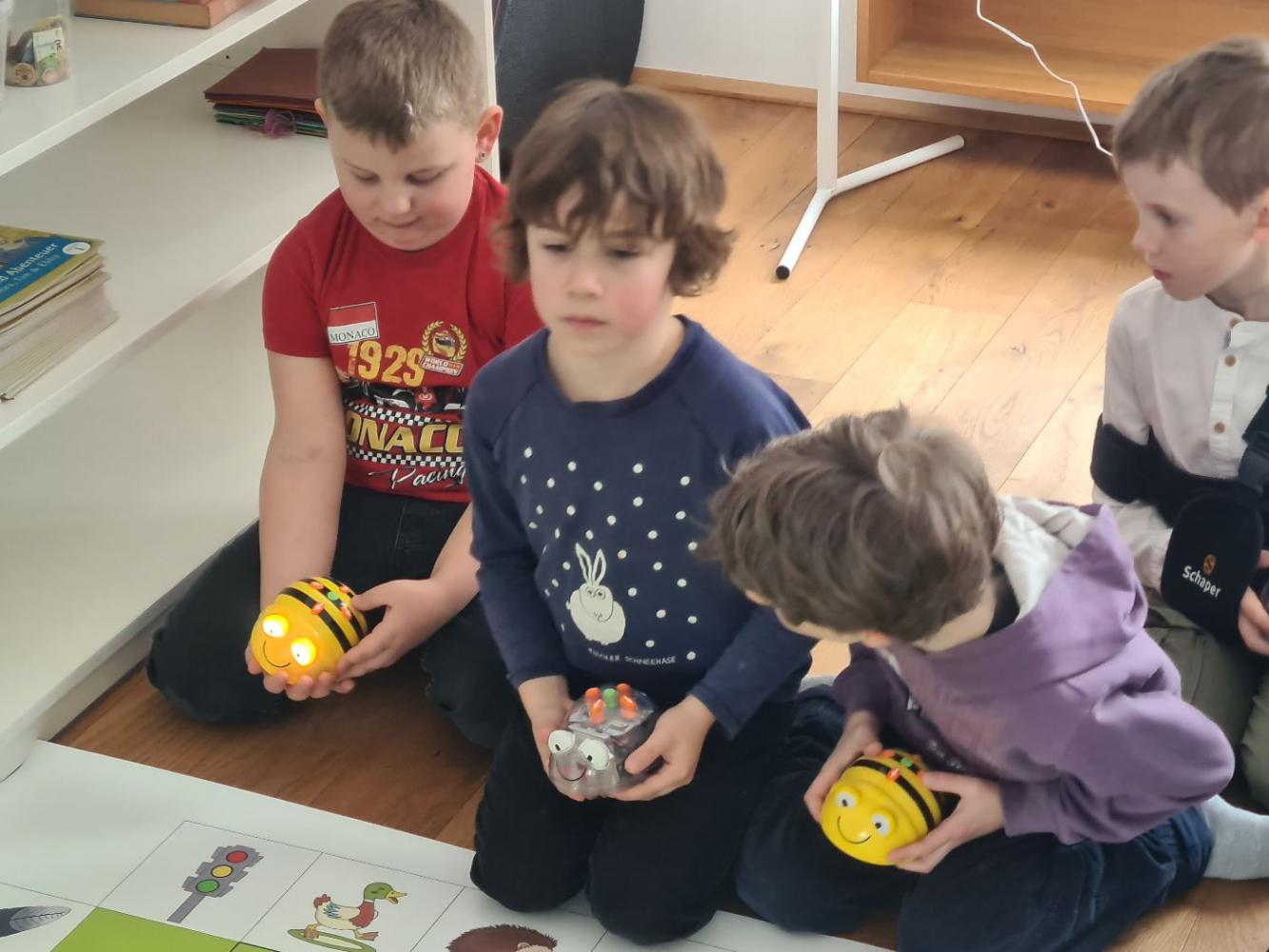 Die BeeBots sind kleine Bodenroboter. Sie werden mit wenigen Funktionstasten direkt am Gerät gesteuert. Die Programmierung erfolgt mit den Tasten vorwärts, rückwärts, links drehen, rechts drehen, Pause und löschen. Erst mit Drücken der Taste Go wird die Programmsequenz gestartet. Das bedeutet, dass man vorab die Schritte zum Ziel planen muss. Mit den BeeBots kann man sich spielerisch dem Programmieren annähern – und das schon in Kindergarten und Volksschule. BeeBots sind simpel in der Nutzung und machen Freude.