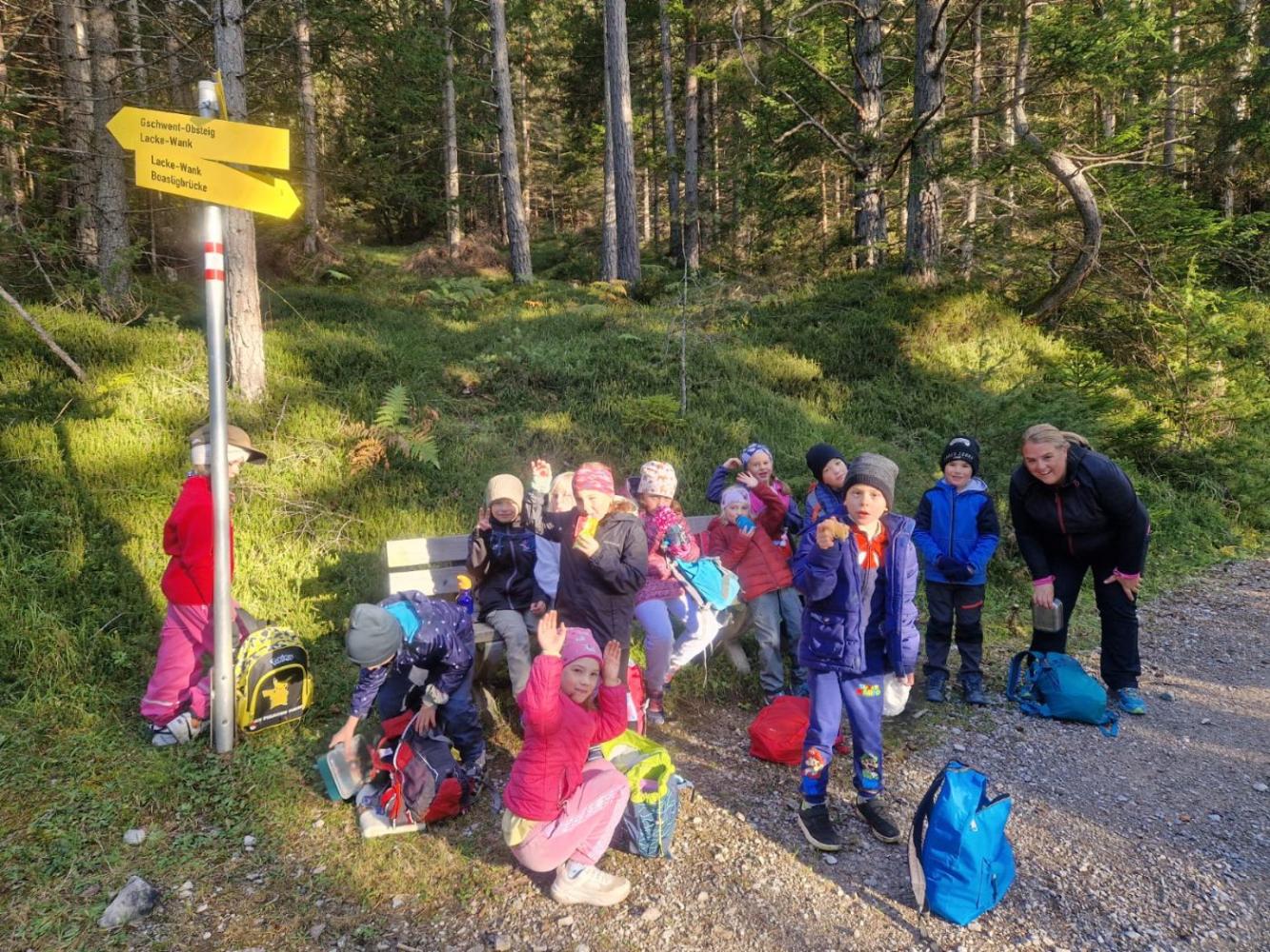 Am Freitag, den 3. Oktober, unternahm die 2. Klasse ihren Wandertag bei herrlichem Herbstwetter. Trotz der Kälte am Morgen zeigte sich der Tag von seiner schönsten Seite: klare Luft, die ersten bunten Blätter und Sonnenschein begleiteten die Kinder und Lehrpersonen auf ihrem Weg.